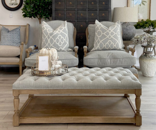 Add a touch of luxury with our Upholstered Coffee Table, a truly versatile piece that can be used as a coffee table, footstool, or even for extra seating. Featuring a solid oak frame, upholstered buttoned top and a full size shelf at the base which is the perfect spot for displaying books and magazines.