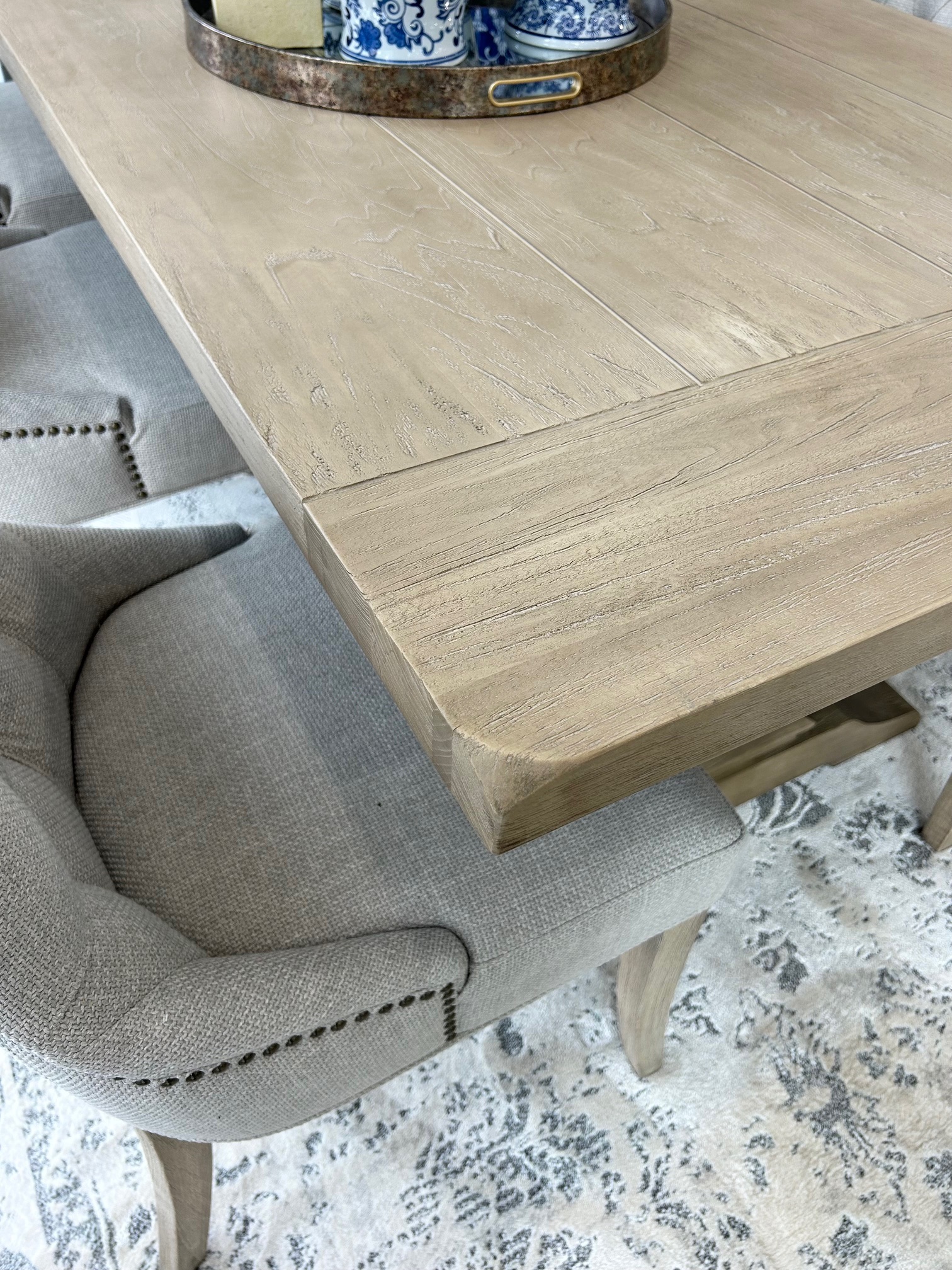6 x Ava Dining Chairs with stunning Studded Detail Upholstered in our Linen Fabric.