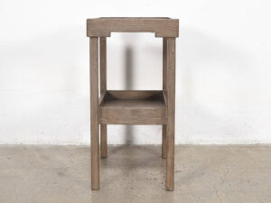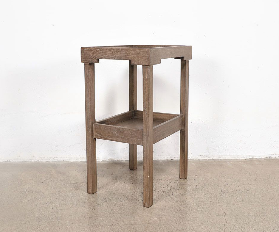 A lower shelf adds balance and purpose, offering space for books, baskets, or keepsakes while maintaining an airy, open silhouette. Its minimalist form and subtle weathered tone evoke a sense of calm, grounding any space in natural serenity.