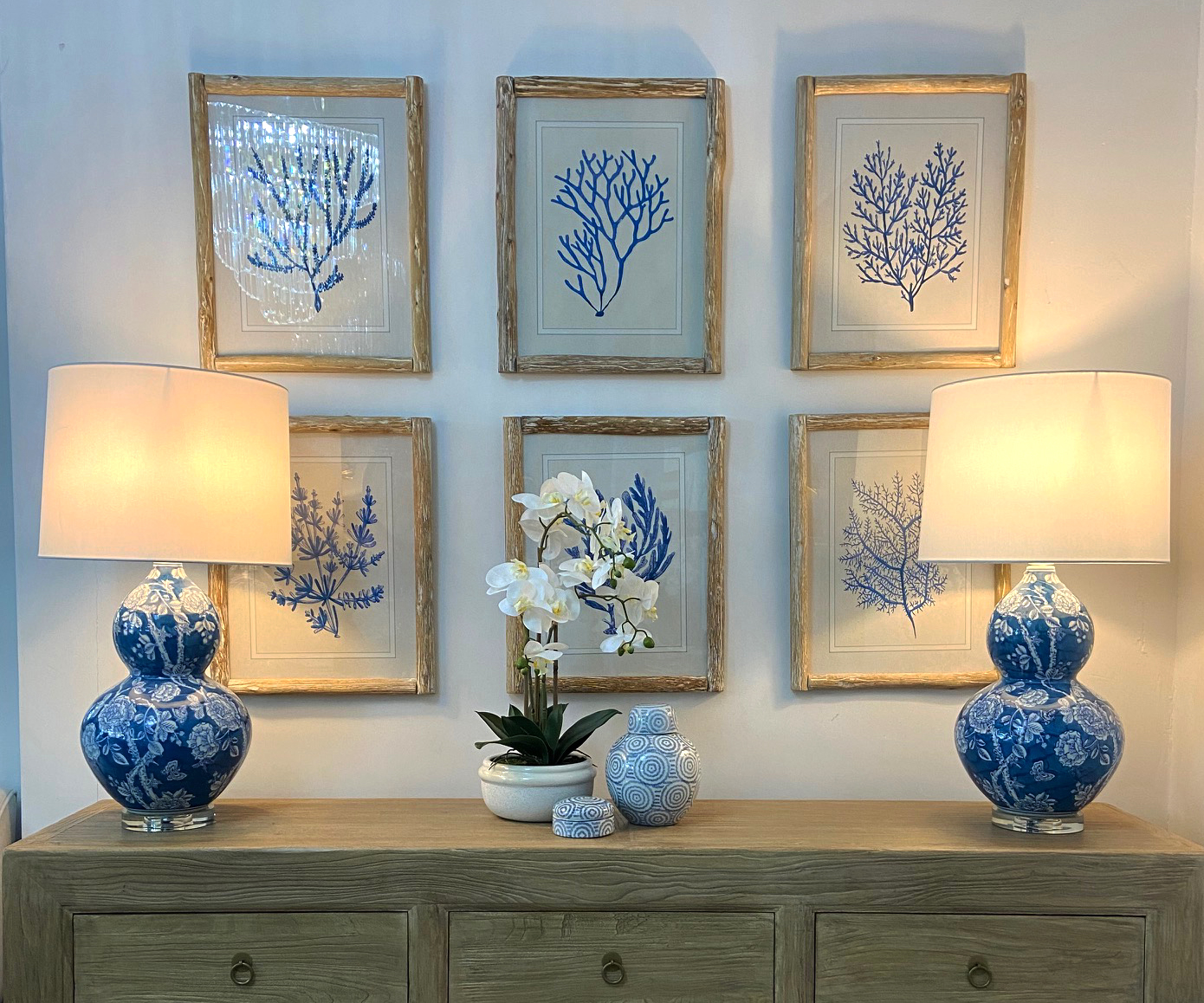 Set of six framed prints in white washed bamboo frame. Liven up your walls with interesting wall art, they look stunning hung together to make a striking display but look equally beautiful when you spread them out. The choice is yours!